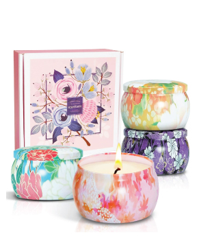 SCENTED SOY CANDLES GIFT SET - 4 SMILE: con olor a rubor peonía, lavanda, manzana canela y flor de cerezo, tiempo de combustión de larga duración de hasta aproximadamente 30 horas por cada vela Cera de soja natural: hecha de cera de soja natural y mecha de algodón orgánico sin plomo, que proporciona una combustión más limpia y más prolongada.