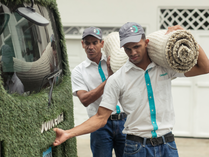Si la alfombra está adherida, el servicio se realiza en las instalaciones del cliente. Si es una alfombra de área (alfombra suelta), el lavado se realiza en nuestras instalaciones. El cliente debe traerla a nuestras oficinas en Santo Domingo o Santiago, luego de cotizar el servicio con nuestro equipo de ventas.
